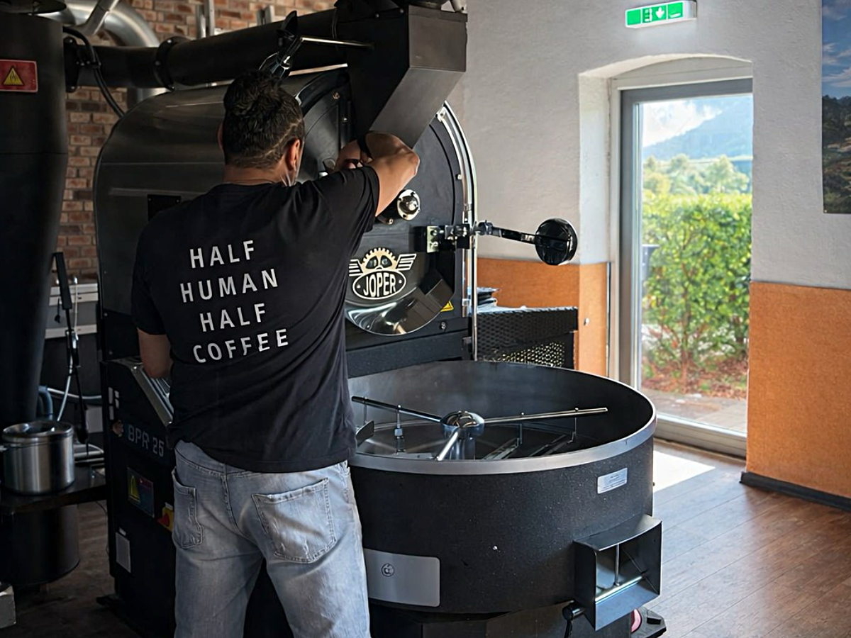 Wir rösten in kleinen Chargen auf einem Trommelröster in Meerbusch. Jeder Kaffee bekommt sein eigenes Röstprofil, abgestimmt auf Herkunft und Aufbereitungsmethode. Unsere Rohkaffees stammen aus Direktbeziehungen – wir kennen die Farmen und die Familien dahinter.